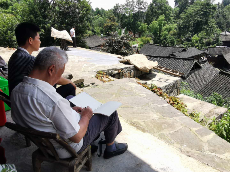 这6天里,创作组先后参观了芙蓉镇、里耶镇、边城镇、浦市镇等国家级历史文化名镇和双凤村、捞车村等历史文化名村。每到一地,当地秀美的山林景色、纯朴的民族风情、精美的历史建筑、厚重的文化底蕴都深深吸引住创作组每一位书画家,极大地激发起了大家的创作热情,有的顿生灵感构思诗句,有的拍照摄取创作素材,有的当即拿出速写本描绘眼前的景观。其间,在前往双凤村的途中,恰逢暴雨致山体滑坡堵塞公路,工作人员不惧困难,清障开路,最终成功抵达土家第一村,收获了满目的人文美景。