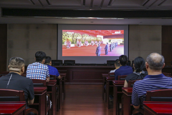 (通讯员 陈荣飞)鉴往事,知来者。9月3日是中国人民抗日战争暨世界反法西斯战争胜利75周年纪念日。为深入贯彻《新时代爱国主义教育实施纲要》和《新时代公民道德建设实施纲要》,激励广大干部职工知史爱党、知史爱国、珍爱和平,9月3日,省文史研究馆开展爱国主义教育,组织干部职工在机关六楼会议室观看中央电视台“纪念中国人民抗日战争暨世界反法西斯战争胜利75周年”直播节目,观看习近平等党和国家领导人同首都各界代表一起,在中国人民抗日战争纪念馆向抗战烈士敬献花篮仪式和纪念中国人民抗日战争暨世界反法西斯战争胜利75周年座谈会。