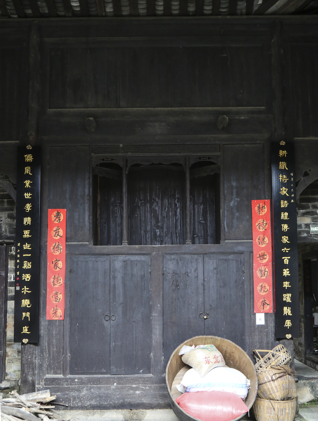 联意解析:上联意为男耕女织以维其家计,诗书礼义以传其家风,因此,张谷英村六百年来人才辈出。龙虎:指人才。下联意为张谷英村有“世业崇儒”额,其家训“忠孝吾家之宝,经史吾家之田”张家后人多儒士,以孝行而名世,多为世之所称赞。其地理形成“溪自阶下淌,门朝水中开”的格局,可谓人杰地灵。